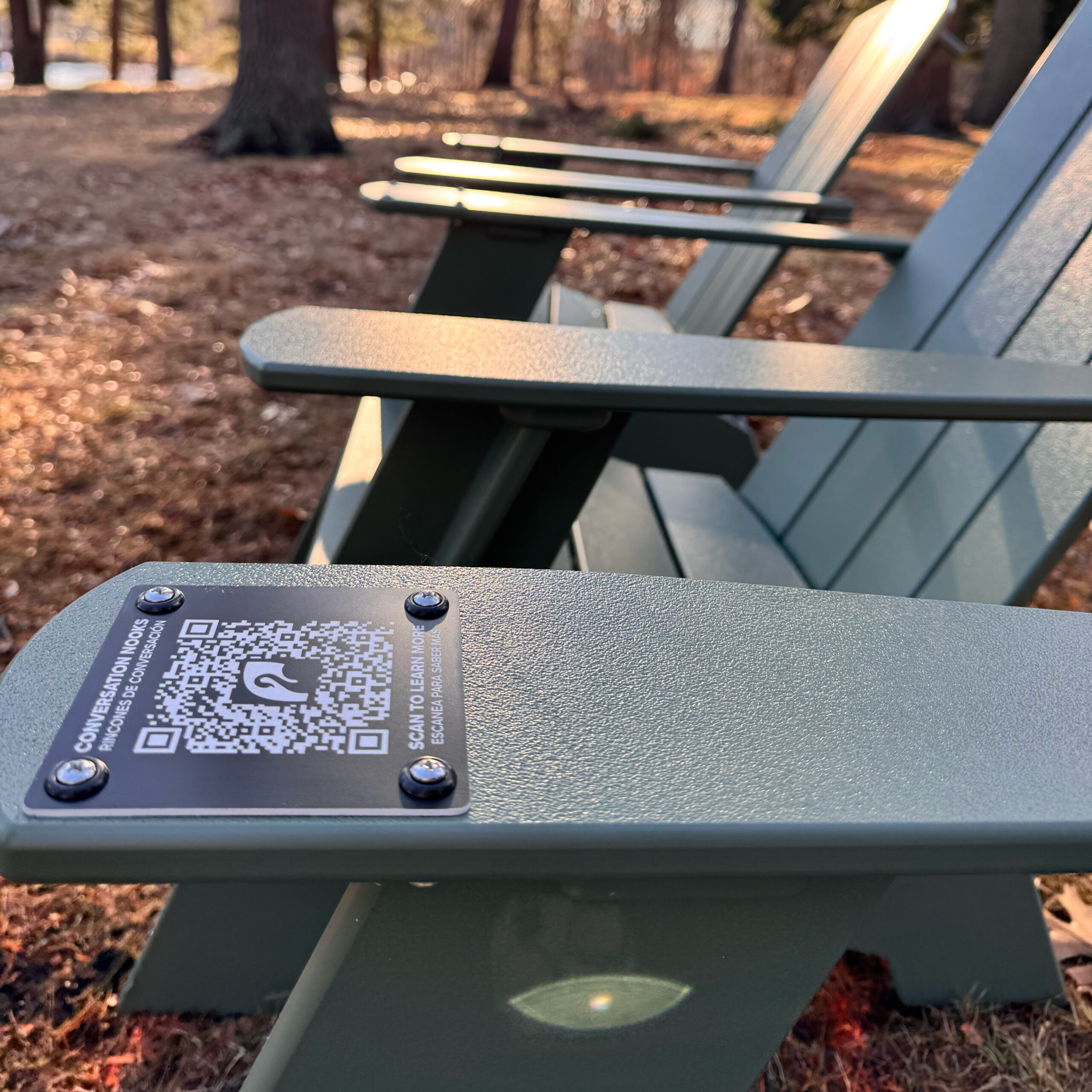 The Roger Williams Park Conservancy introduced Conversation Nooks as inviting places to pause, chat, and enjoy lesser-known views of Roger Williams Park. We designed and installed durable, QR-coded interpretive panels for each nook, pairing clear wayfinding with a friendly welcome in both English and Spanish. Scanning the code brings visitors to a simple online hub with background on the project and links to stay connected with the Conservancy, plus information on the AARP Community Challenge support behind the installation.